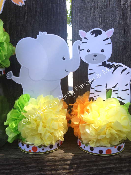 Safari Jar Centerpiece Toppers Set of 5 Baby Shower Birthday Jungle